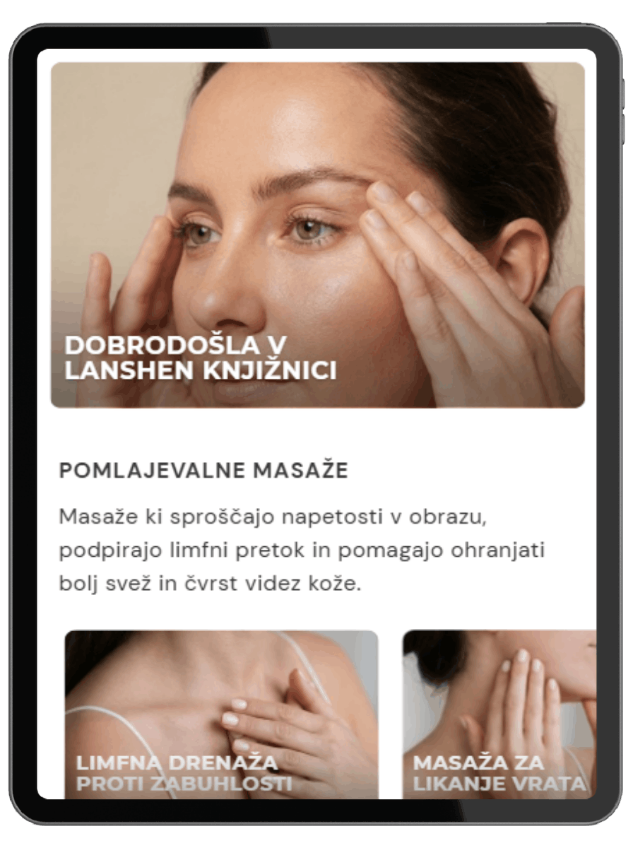 Posebnost Lumine je tudi to, da ob nakupu prejmeš dostop do Lanshen knjižnice pomlajevalnih masaž in ritualov. Tam te čakajo skrbno pripravljene tehnike za obraz, s katerimi lahko nego svoje kože dvigneš še stopničko višje.